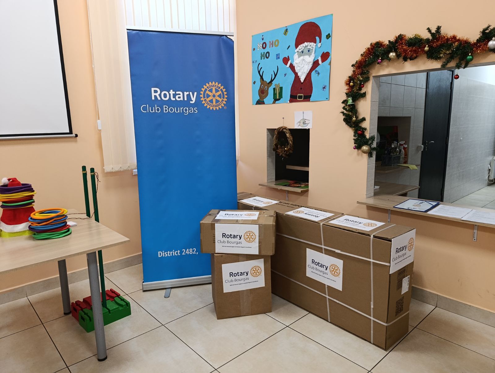 Официалното предоставяне на обордуването съвпадна с празничното тържество на децата, проведено в дните около Коледа. На събитието присъстваха родители, екипът на центъра и ротарианци от клуба. В знак на благодарност беше връчена Благодарствена грамота на президента на Ротари клуб Бургас – Весела Петкова.